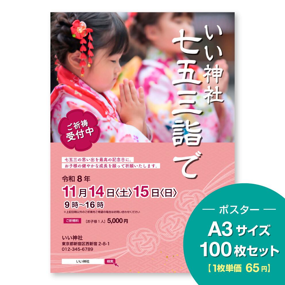 A3サイズの七五三ポスター100枚セットです。
